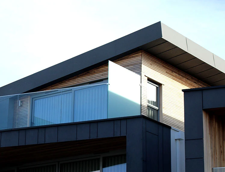 A modern complex of 30 eco-friendly houses along the riverside, featuring shared green spaces and a community boathouse